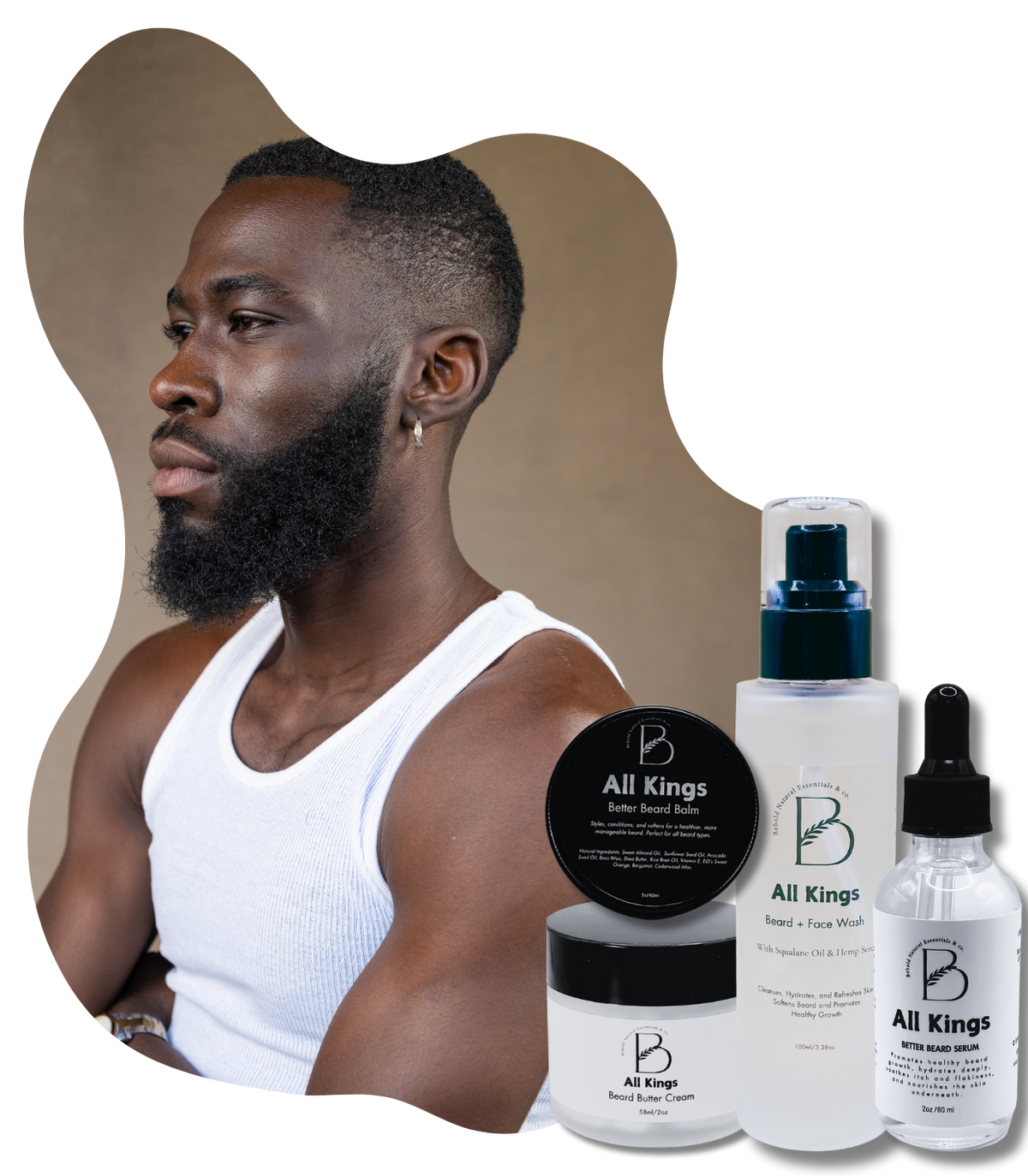 Our All Kings Collection is formulated to cleanse, condition, and nourish your beard while hydrating the skin beneath. Each product works to relieve dryness, reduce itch, and promote stronger, fuller growth from root to tip.