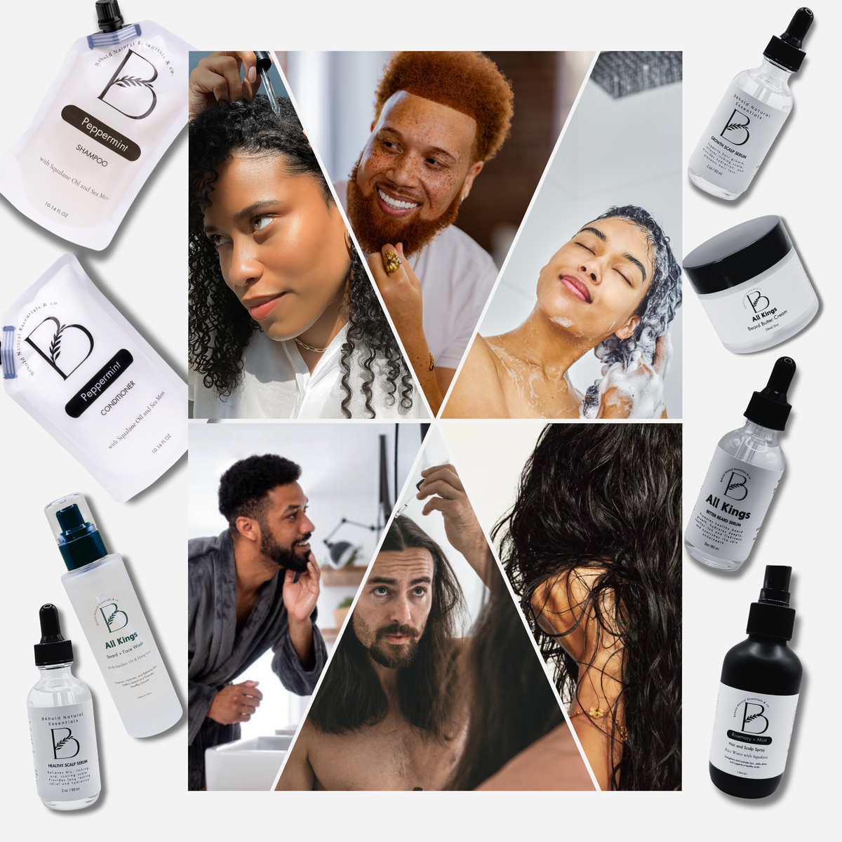 Bēhold Natural Essentials was created with one mission — to craft premium, naturally sourced haircare that works from root to tip. Each formula is handcrafted to nourish the scalp, strengthen strands, and restore balance — especially for those managing dryness, buildup, or malassezia-related concerns.